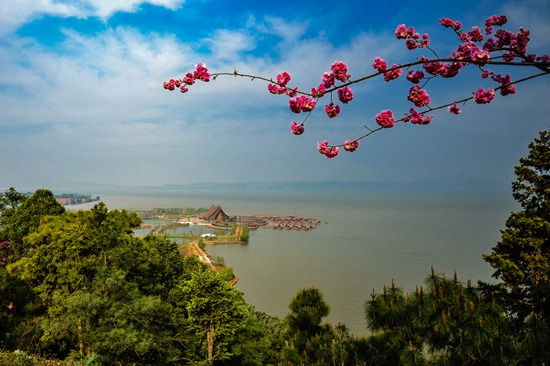 图片说明:古滇国樱花盛开时 该片只对亮度、对比度、饱和度做适度调整