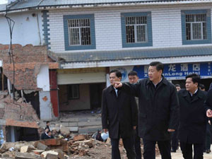 - 2015年首次离京考察,习近平选在云南鲁甸地震灾区。1月19日下午,习近平乘车一路颠簸直奔峡谷中的震中龙头山镇,来到原镇政府所在的遗址,走进满是废墟的院子,询问地震伤亡、抗震救灾情况。
