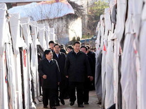 - 1月19日至21日,习近平来到昭通、大理、昆明等地,看望鲁甸地震灾区干部群众,深入企业、工地、乡村考察,就灾后恢复重建和经济社会发展情况进行调研。2014年8月3日,云南昭通市鲁甸县发生6.5级地震,对群众生命财产和基础设施造成巨大损失。地震发生后,习近平总书记第一时间作出重要指示,要求全力以赴做好受灾群众安置和灾后恢复重建工作。5个多月过去了,灾区群众生活过得怎么样?恢复重建工作进展得如何?灾区群众还有哪些要求和期盼?总书记十分关心和牵挂。
