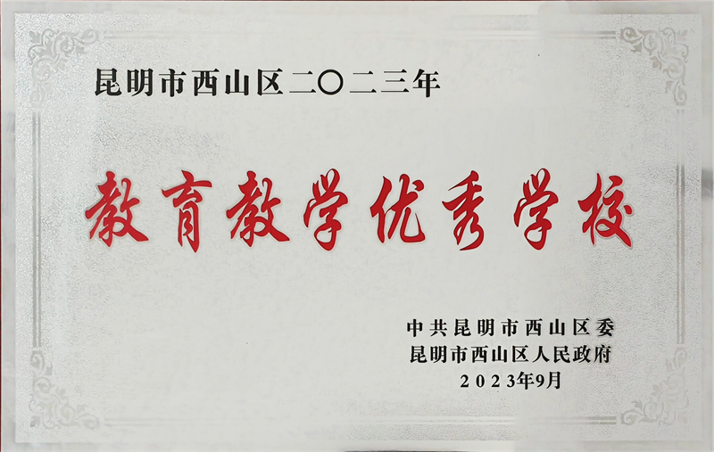 特别是近年来,昆五中在教育教学的道路上更是取得了令人瞩目的成就。初、高中教学质齐头并进,历年中考总平均分稳居西山区传统公办中学第一名,一级完中上线率均达50%以上,普高上线率达90%以上,两项指标均居西山区传统公办学校第一。在初中教育教学成绩呈现高质量的同时,高中办学质量以一年上一个台阶的可喜态势得到了学生、家长和社会的充分认可,高考成绩逐年攀升,不但培养出了高考600分的学生,一本率及本科率也节节攀升,一本率从最初的0.3%攀升至26.1%,本科上线率从67%攀升至86%。连续三年,学校荣获了由西山区人民政府颁发的“教育教学优秀学校”称号,这充分证明了学校在教育教学方面的卓越实力与不懈努力。2023年,昆五中的高考成绩更是实现了质的飞跃,一本率及本科率突飞猛进,令人瞩目。这样的成绩不仅彰显了学校的教学实力,也为学生们的未来奠定了坚实的基础。因此,学校还被西山区人民政府授予了“教育教学进步学校”的荣誉称号,这是对学校教育教学工作的高度评价和认可。
