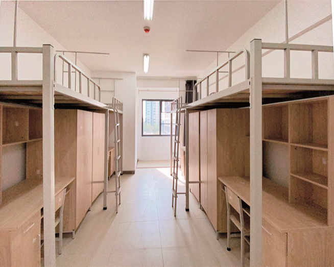 四人公寓:标准四人间,上床下桌,独立卫生间,24小时热水。