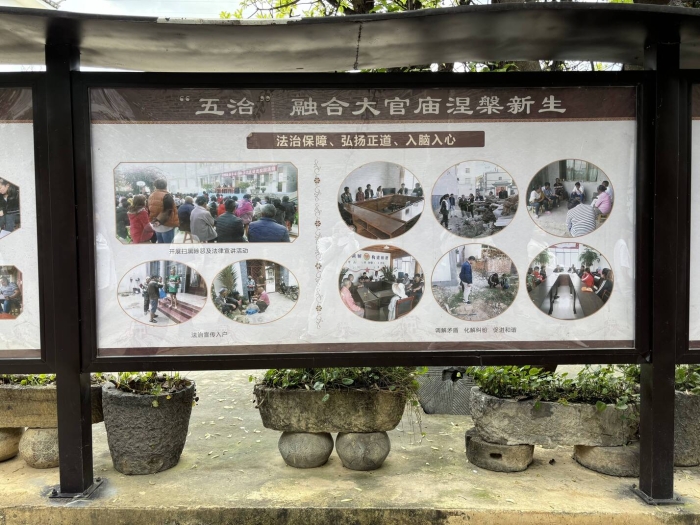 近年来,大官庙社区通过建设“小堡垒”“小队伍”“小模式”“小评比”“小平台”,促进“政治”“法治”“自治”“德治”“智治”五治融合发展,激发基层治理内生动力,初步探索出一条基层“自我管理、自我服务、自我提升”的基层社会治理新路径。如今,大官庙社区已从一个矛盾纠纷多、基础设施差的社区一跃成为宜居宜业的美丽乡村。