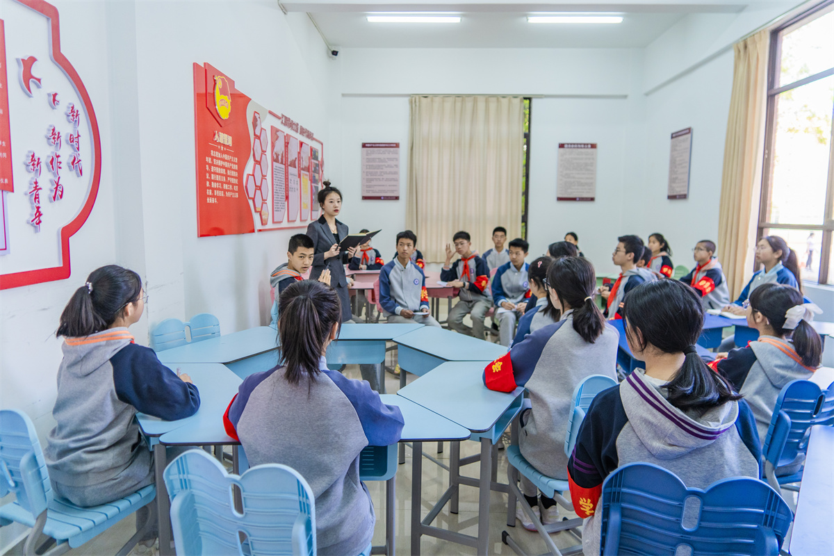 在德育工作中,以学校党建为引领,以学校核心育人观为主线,与新时代的人才要求相衔接,形成了我校“爱国主义”和“坚毅品格”的育人模式。形成了以“爱国”为核心,以“担当、民主、自由、包容、合作”为五大要素的“学校核心育人观”。