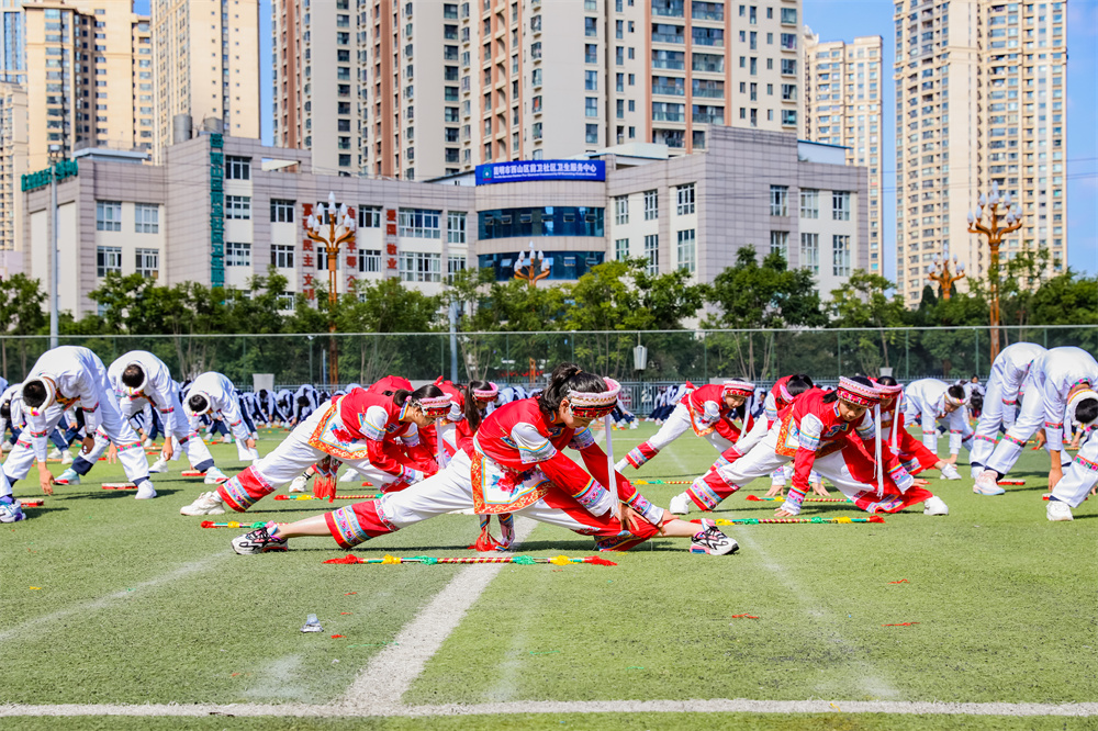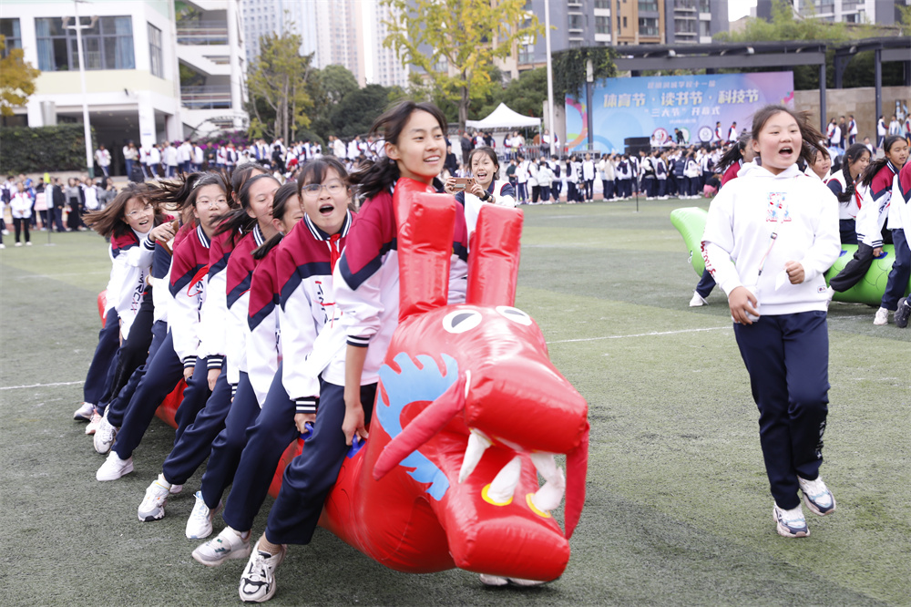 学生发展发面,学校始终坚持五育并举,以服务学生全面发展、增强综合素质为目标,以多种形式滋养学生精神世界,积极促进学生身心和谐发展。比如:润城书院讲坛、门类丰富的选修课,组建足球特长班、交响管乐班,将自然、劳技、信息等进行校本化统整,让学生审美情趣、音乐表现、体育技能、合作能力、创新精神等综合素养得到提升,助推学生多元发展,举办读书节、艺术节、科技节、体育节等活动,打造学校独具特色的文化品牌,极具民族特色的大课间成为校园里的一道亮丽风景线。