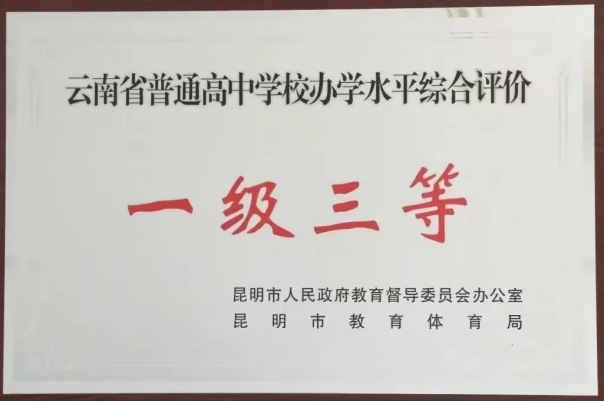 办学以来,学校先后荣获云南省民办教育“优秀学校”,昆明市“首批特色高中项目实验学校”,青少年科学工作室,呈贡区教育工作先进单位、呈贡区文明单位等诸多荣誉称号。此外,学校被清华大学、空军招飞局、南开大学、四川大学、四川外国语大学、大连海事大学、西北大学、南方科技大学、西南交通大学、浙江大学、大连理工大学等20余所双一流大学授予“优秀生源地”称号。