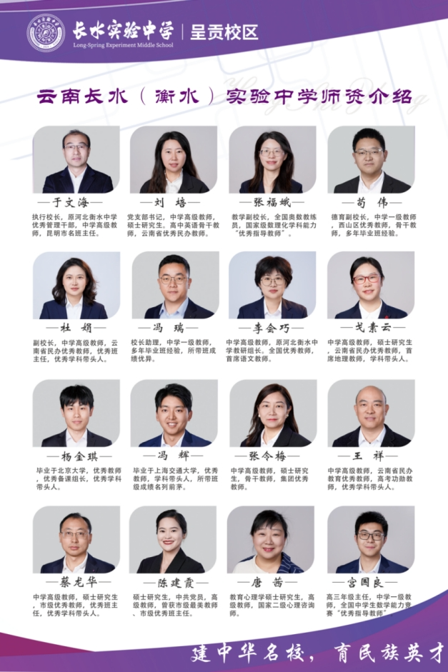 于文海,执行校长,原河北衡水中学优秀管理干部,中学高级教师,昆明市名班主任,高考明星教师。所教学生先后共考取清华北大40余人。