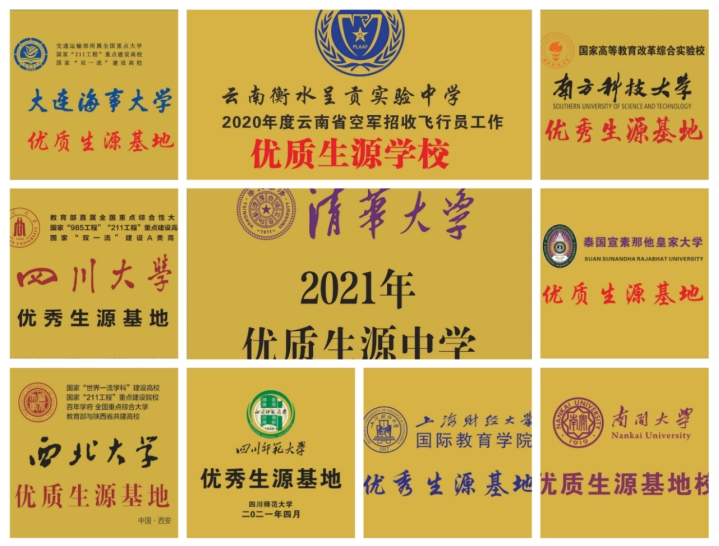 此外,我校广受社会各界的认可,被清华大学、空军招飞局、南开大学、四川大学、大连海事大学等20余所双一流大学授予“优秀生源地”的称号。