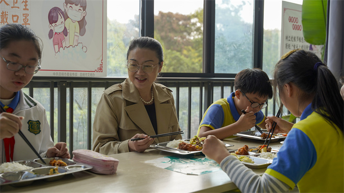 9、 学校制定陪餐制度。小学部班主任及教师全程陪餐。中学部教师代表、学校领导轮流陪餐。所有陪餐人员均与全体学生同时间、同地点、同菜品就餐。