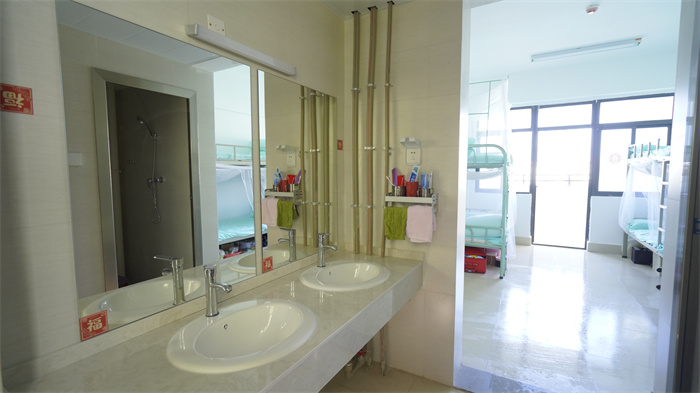 昆明市官渡区北清学校宿舍为四人间,每间宿舍配备双洗漱台、双淋浴间,24小时在岗、如同父母般关爱的宿管老师。