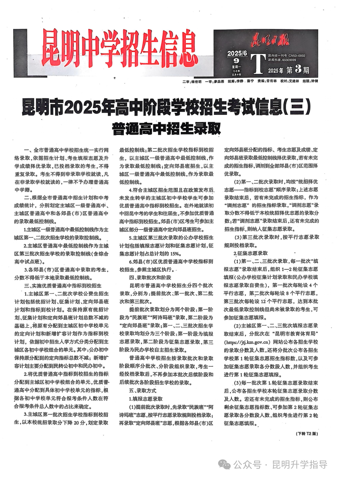 昆明2025年中考招生,指标到校及录取日程表!