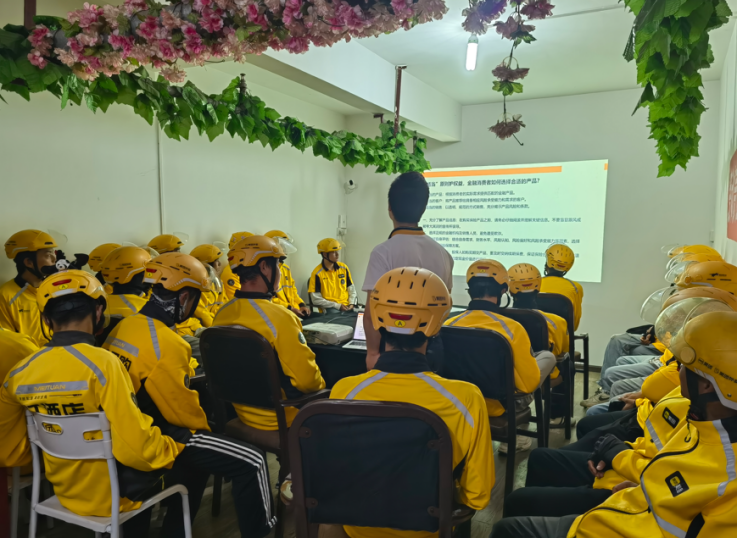 阳光财险云南省分公司志愿者走进骑手驿站,宣传普及保险金融和消费者权益保护基础知识