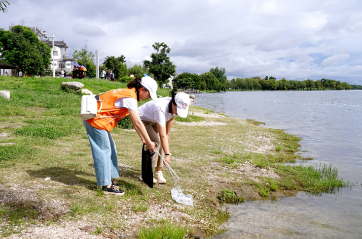 阳光财险大理中支志愿者正在清理洱海生态廊垃圾