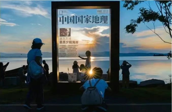 ရေကန်ဘေးရှိ ပျဉ်ခင်းလမ်းကျဉ်းသို့ လမ်းလျှောက်ရင်း နေဝင်ဆည်းဆာသည် အလှဆုံးသော အချိန်ကို ကြိုဆိုလာသည်။ ကောင်းကင်မှ နေရောင်ခြည်များသည် ဖြာဆင်းလာကာ ရေကန်မျက်နှာပြင်ပေါ်တွင် ရွှေရောင်လမ်းတစ်ခုကို ဖန်တီးသည်။ ကလေးငယ်များသည် ရေတိမ်ပိုင်းတွင် လိုက်လံဆော့ကစားနေကြပြီး အနည်းငယ်နွေးထွေးသော ကမ်းခြေတွင် ၎င်းတို့၏ ခြေရာများကို အမှတ်အသားပြုကြသည်။ ရေကန်၏ အခြားဘက်ကမ်းတွင် ဝေးကွာသော တောင်တန်းများသည် နေဝင်ဆည်းဆာထဲတွင် ခရမ်းရောင် လှိုင်းလုံးများကဲ့သို့ လှိုင်းထနေကာ ကြယ်ပွင့်များ ကျရောက်လာပြီးနောက် မရေမတွက်နိုင်သော မီးအိမ်မီးတိုင်များ ထွန်းလင်းခြင်းကို စောင့်မျှော်နေကြသည်။
