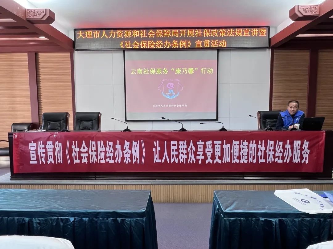 大理州社保服务宣传小分队深入大理旅游集团有限公司,开展社保政策培训暨《社会保险经办条例》宣传活动。