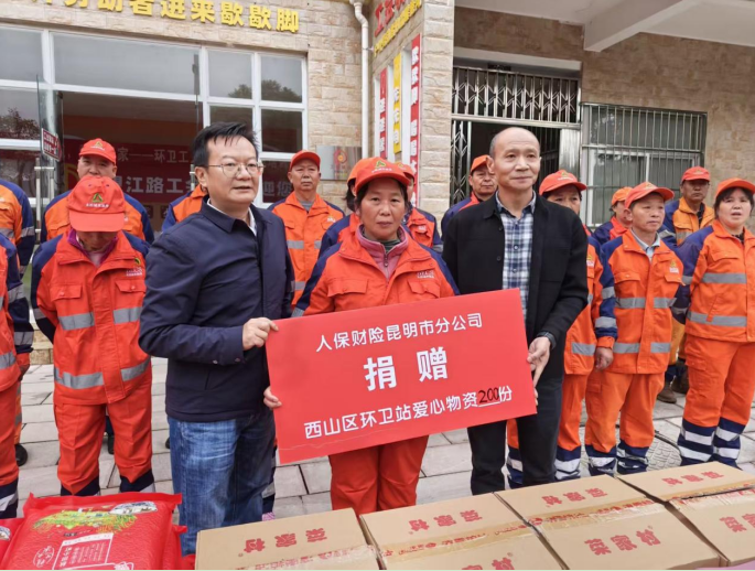 10 月 24 日上午,“春城金晖 暖橙行动” 昆明金融业关爱环卫工人计划启幕式暨西山区环卫工人爱心帮扶仪式,在西山区望江路工会驿站举行。此次活动由昆明市委金融工委、昆明市城市管理局主办,西山区财政局、西山区城市管理局、人保财险昆明市分公司协办,30余名代表参与活动,为环卫工人送上关怀。