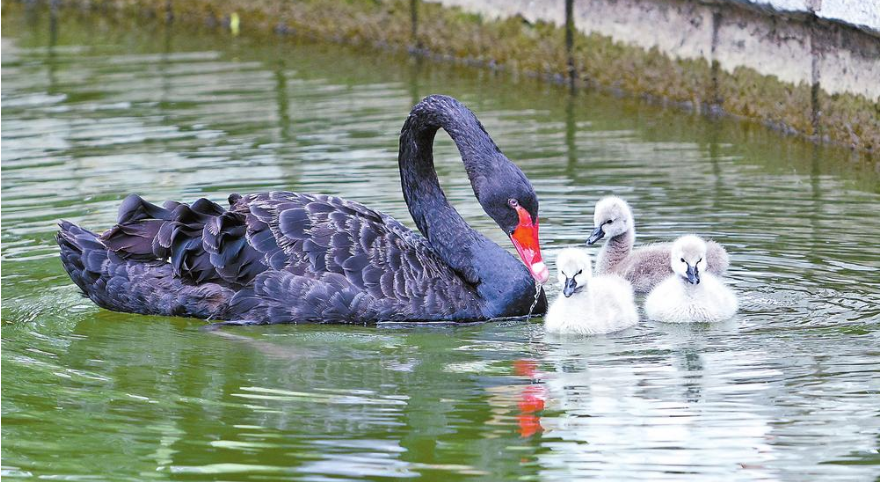 近日,昆明翠湖公园传来喜讯,园内九龙池饲养的黑天鹅成功孵化出4只天鹅宝宝。这些小天鹅一亮相就成了公园里的“人气明星”。它们全身覆盖着蓬松白灰绒,紧紧跟随着黑天鹅妈妈,在碧波间游弋、觅食,不时发出稚嫩的鸣叫,萌态十足,吸引了众多市民游客驻足拍照。