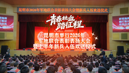春樱映彩,荣光启程。3月19日上午,“春城薪火·榜样同行”昆明市2026年军地联合表彰表扬大会暨上半年新兵入伍欢送仪式在昆明理工大学红土会堂隆重举行。