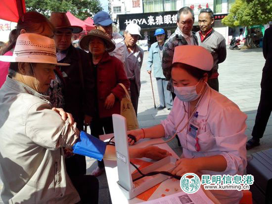 本次活动以“携手人道促和谐,志愿服务惠民生”为主题。纪念活动现场,昆明市延安医院呈贡医院、呈贡区人民医院等医院医护人员免费为市民做体检,包括量血压、测脉搏,并发放红十字知识宣传手册。