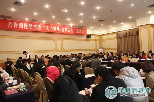 昆明信息港讯 记者张子源 为深入学习党的十八届四中全会关于全面推进依法治国的会议精神,鼓励团员青年积极发挥生力军和突击队作用,12月4日,共青团昆明市委召开了“法制昆明·青年先行”座谈会,来自全市各条战线上的法律专家、优秀青年代表90余人参加了会议。会议由团市委书记欧明锋主持。