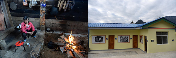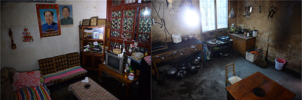 高德荣在贡山县居住时使用的客厅(左)和厨房(右)。新华社发布客户端记者 胡超 摄