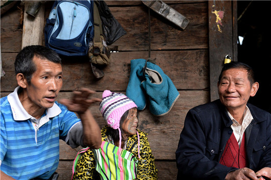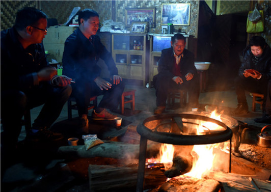 高德荣(右二)不喜城里喜乡下,不爱霓虹爱火塘。新华社发布客户端记者 王长山 摄