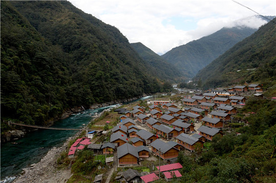 独龙人家的新农村群山环抱、流水潺潺。新华社发布客户端记者 胡超 摄