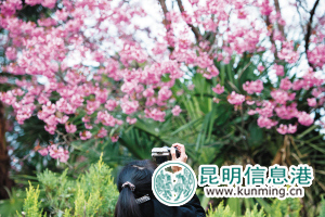 圆通山的冬樱花开放,游客们用相机拍摄下冬樱花的美景 都市时报记者 杨帆/摄