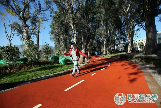 据透露,作为2014年滇池环湖“三圈”建设的重大项目之一,紧临滇池畔的滇池度假区力求把这条路建成滇池环湖慢行系统的样板。此路西起海埂公园西门,东至盘龙江入湖口西侧,全长4200米,专门铺设的路面材料适合骑行和慢跑,此慢行系统紧临滇池,市民可以一边健身,一边欣赏滇池、西山的湖光山色。
