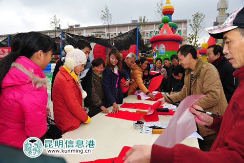 阳宗海海风艺社书法家现场免费为老百姓写春联 通讯员朱林/摄