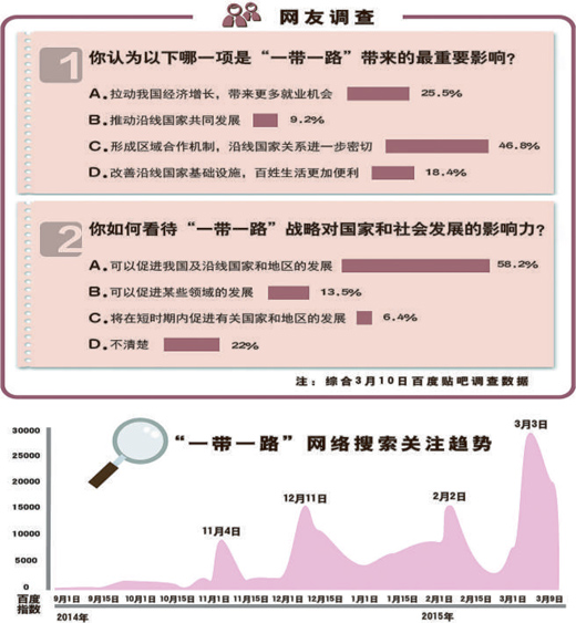 百度贴吧调查显示,58.2%的受访者认为,“一带一路”“可以促进我国及沿线国家和地区的发展”,显示着这样一个战略影响力之强。