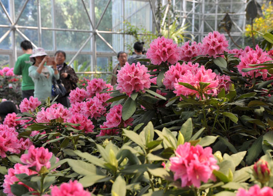 温室内展出的高山常绿杜鹃:红星。记者杨艳辉/摄
