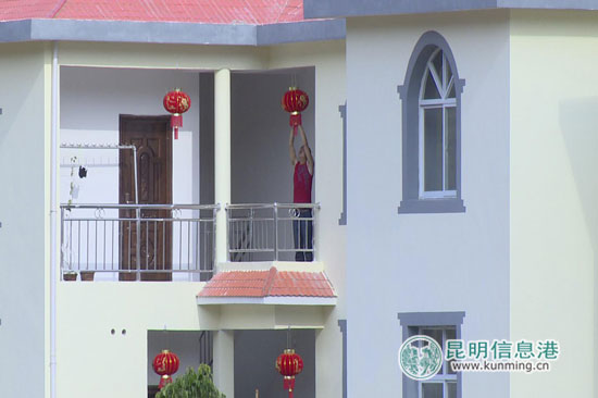 搬进新房的村民欢天喜地的挂起红灯笼。记者和灵峰/摄