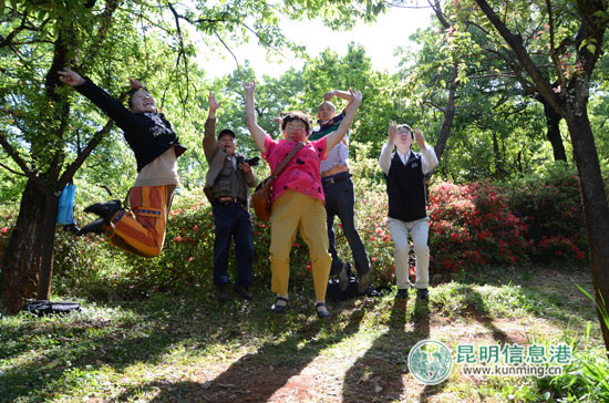 4月3日,阳光明媚,春风拂面。早上9点30分,近30名彩龙网友从城市的四面八方齐聚到黑龙潭公园正门前,在听完昆明信息港工作人员的活动介绍和注意事项提示后,大家迫不及待涌入公园,融入杜鹃花谷美丽的花海之中。网友们或身着简单的衬衫、T恤,或是艳丽的裙子,搭配一件轻便的外衣,头戴草帽,手拿相机,来到美丽的杜鹃谷,高高的参天大树,如海洋般盛开的杜鹃,花丛中透出青春美少女的身影总能吸引住网友们的目光,迅速拿起相机抓拍。春风袭来,不乏满园的欢笑声,4月真正是一个踏青赏花的好时节。在杜鹃谷里,看着眼前漫山遍野的杜鹃花,一些女网友们不甘心只做摄影师,而是变身“杜鹃花仙子”,在花丛中寻觅最佳拍摄基地,纷纷当起了模特。