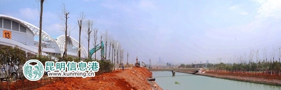 据了解,作为场馆周边最重要的一条景观绿化河道的虾坝河,本次整治河道长度达2.1公里,综合整治的内容包括河道整治建设、河道截污、桥梁搭建、桥梁绿化等工程。截至目前,综合整治工程完成形象进度的70%。其中截污管铺设860米;河底清淤1160米;河道外侧雷诺护垫铺设765米;河道内沿格笼石承台浇灌完成1273立方;格笼石支砌完成6745立方;一所桥梁梁板吊装完成;整个工程目前完成投资1.1亿余元。经过综合整治,虾坝河将成为滇池国际会展中心周边最重要的一条景观河道。