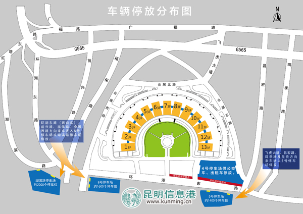 据昆明交警相关负责人介绍,“南博”展会期间,社会车辆不得进入场馆内部区域停放,在展馆外围分设有多块停车场地。其中,4号停车场专供公交车、出租车辆停放;5号、8号及湖滨路地块供社会车辆停放;非机动车停放于会展中心正面的环湖东路上划定的“非机动车停放点内”。