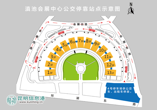 昆明滇池国际会展中心公交及出租车停靠环岛示意图 供图