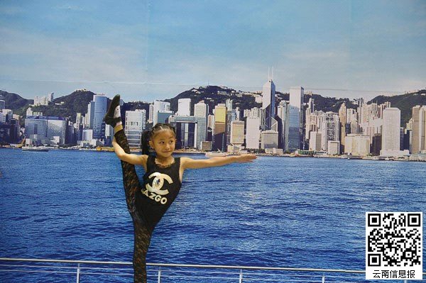 在妈妈相机前摆出“剪刀手”的小朋友,当然还没有体验过拥堵的旺角,但在维多利亚湾前“长个姿势”,也算是为未来的迪士尼乐园之行进行预演。