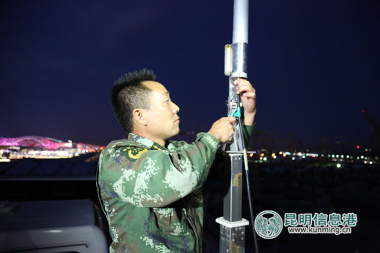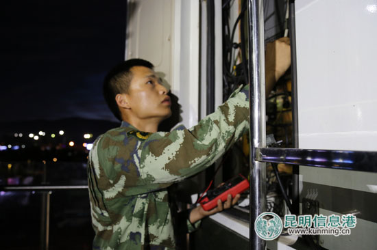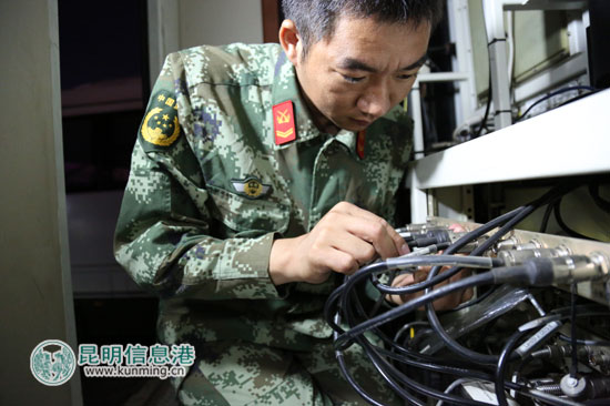 昆明信息港讯 记者廖拓溪 通讯员杨红智 16日,被成为“史上最严格安保”的第三届南博会进入最后一天。早上4点,滇池国际会展中心静静地被黑夜笼罩着,只待几小时后阳光和扫货人潮一起到来。而此时,武警云南总队第 二支队通信股的官兵们已经起床,早早开始一天的忙碌。