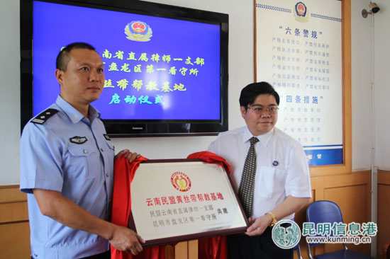 盘龙区第一看守所所长赵亚晖和陈维标律师为帮教基地揭牌 警方供图