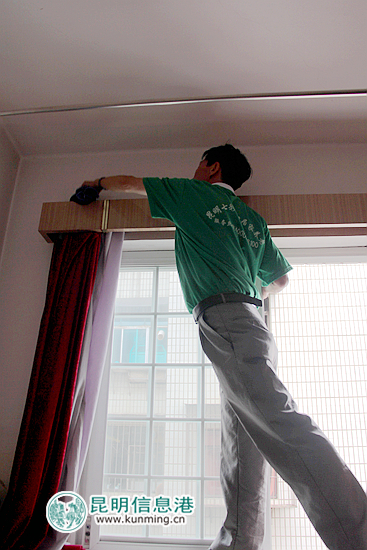 家住和平路社区的老俩口王家馨和宗兆馨,二老今年都已有80岁,由于子女工作繁忙,不能抽出时间陪伴和帮忙照顾家,家里的窗户、吊灯常年积灰,两位老人对此很头疼。“一般的打扫我们还能做点,但窗台、高处的地方我们就没有办法了。” 当日,王家馨决定尝试一下电话预约家政服务,不一会儿,身着统一工作服的两位清洁工便登门开始清洁工作。