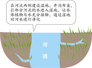 但实际上,35条入滇河道离滇池距离较短,自然净化的作用很小。所以,河口湿地的建设就是为进入湖泊的河道污水净化、保障入湖河水的水质,提供了一条新的技术支撑。在河流两侧建设湿地,开沟布渠,引一部分河流的水进入湿地,让水体植物与水充分接触,通过湿地对河水进行净化。