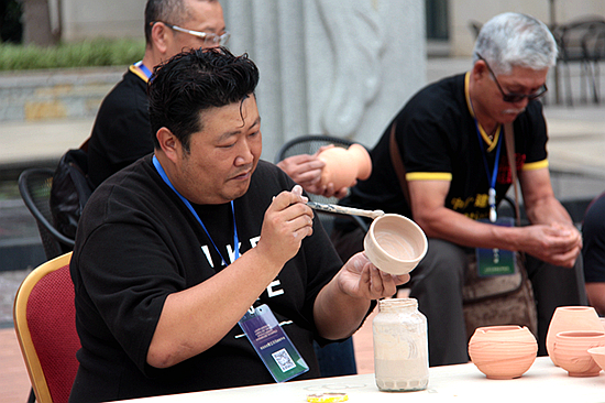 韩国陶艺家现场展示制陶工艺。记者栗飞/摄
