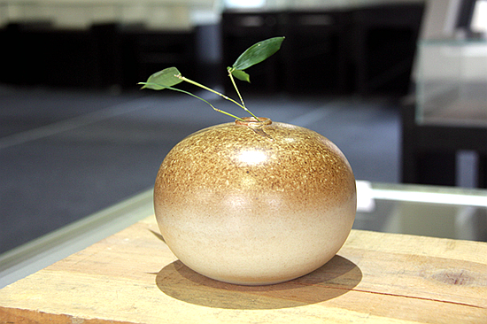 国内著名陶艺家吕竹玉作品“圆融”。记者栗飞/摄