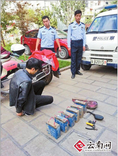当天上午8点,在昆明市穿金路金庭小区,李先生夫妻俩刚走出单元楼外,便看到一名年轻男子将一辆电动车的电瓶搬到另一辆电动车上。见此,李先生质问男子,男子见被人发现,立即骑上电动车逃跑。“小偷偷东西了!”李先生夫妻俩一边喊,一边追了上去。因为小区的巷道有点狭窄,听到喊声,居民纷纷围堵上去。同时,有市民立即拨打了报警电话。