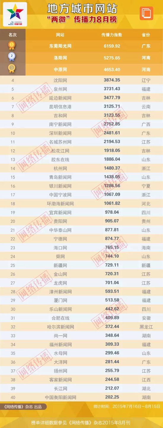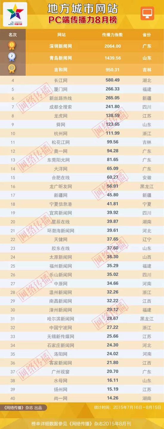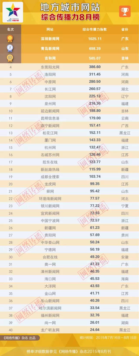 全国地方城市网站传播力8月榜惊艳亮相