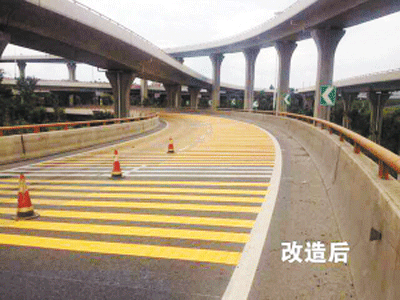 从9月3日开始,公司、交警、路政联合对杜家营立交最易发生事故的几条匝道进行“安保设施小手术”,在下坡弯道处密集施划震荡减速带,安装醒目的“限速40”的标志牌,在防护墙上安装被动反光装置,让夜间行驶的车辆也能找到防撞护栏的弧形线路。工程9月7日结束,经过几天试用,效果非常好,很多驾驶员反映震荡减速带让车速控制得比较平稳,转弯线也非常明显,对驾驶员是个很好的提醒。