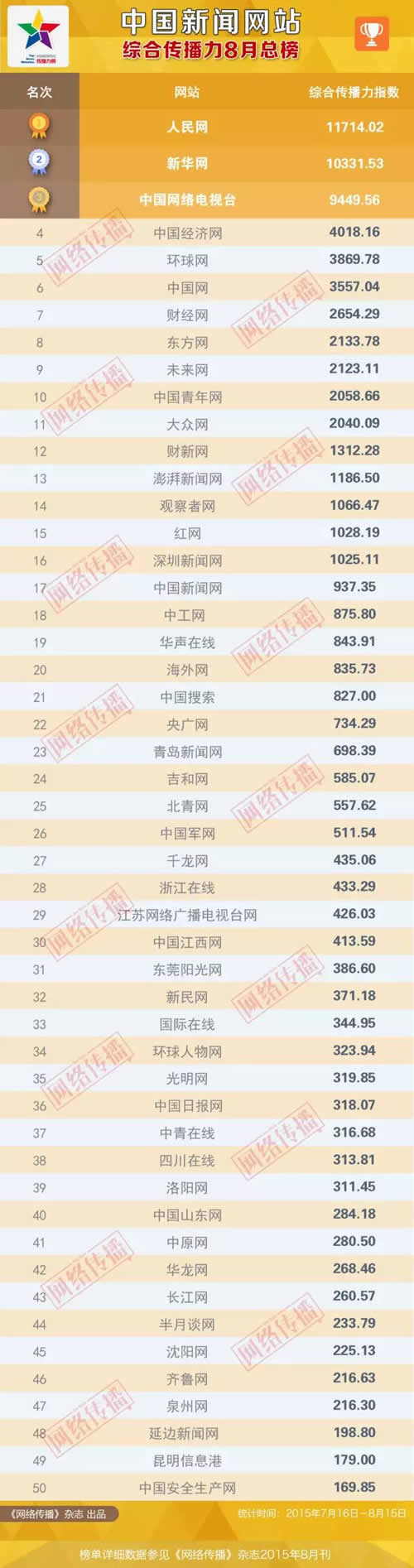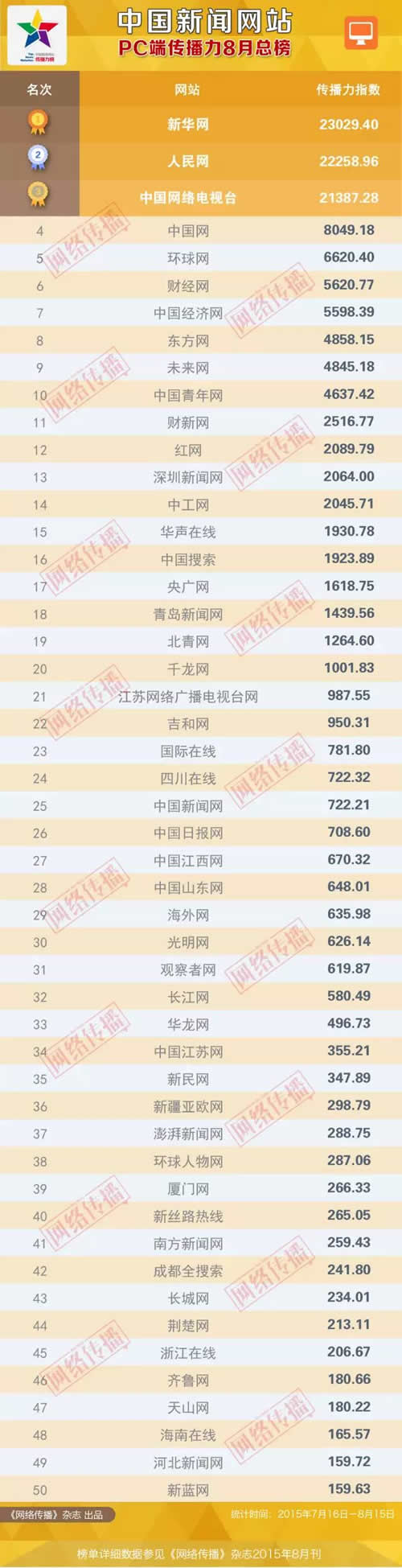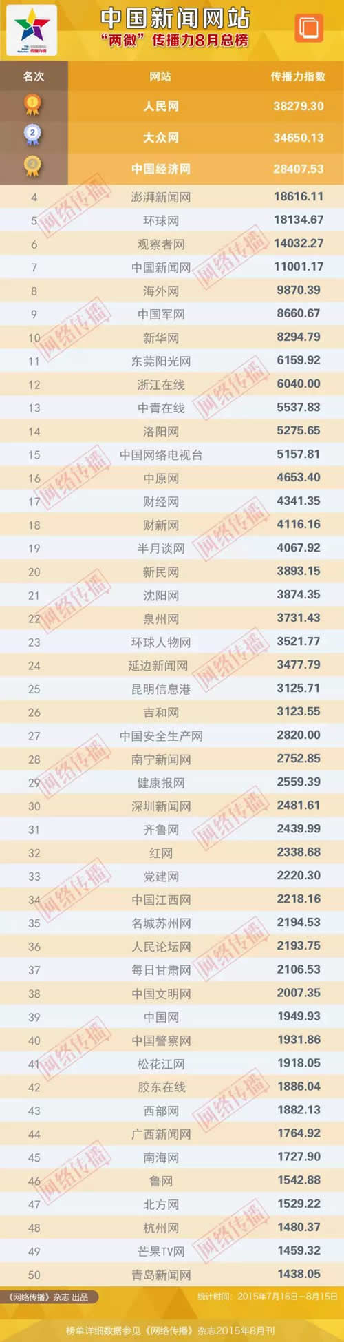 统计时间:2015年7月16日至8月15日