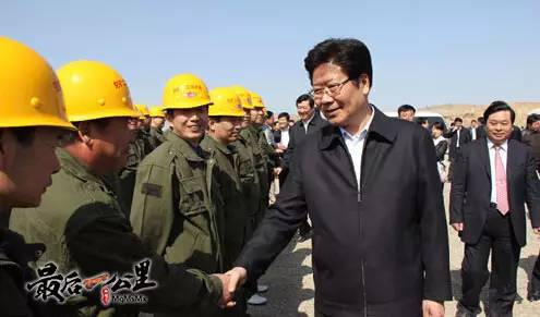 2011年4月2日,新疆第三批定居兴牧水利工程18个项目在7个地州的18个县市施工现场同时开工奠基,标志着自治区规划内的27项定居兴牧水利工程全部启动实施,张春贤与工人亲切握手。