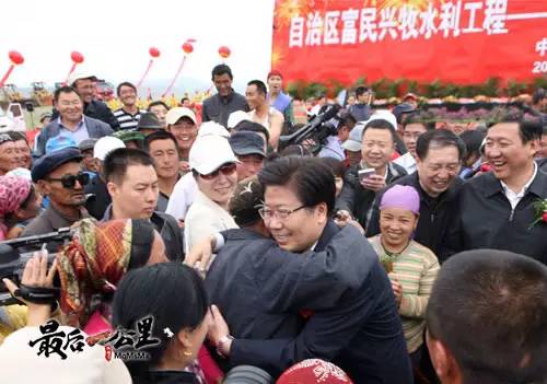 72岁的哈萨克老人俄勒斯别克一家8口人,赶来参加水库奠基仪式。老人最大的心愿就是想看看张春贤书记,这是老人和张春贤书记紧紧拥抱在一起。