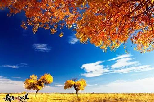 想当年,被它的千年不倒所震撼。而如今,又被它的金黄璀璨所感动!它叫——胡杨。